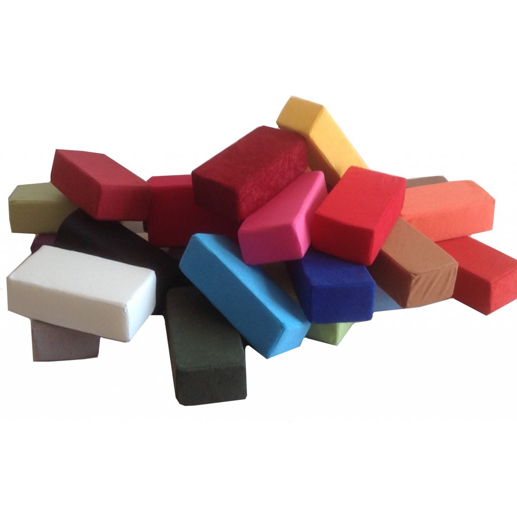 Set obsahuje cihel - 10 kusů, deset barev. vyrobených z kvalitních molitanových kvádrů. opatřených pevnou neklouzavou látkou. Je možné udělat v jedné barvě, napište do poznámky.