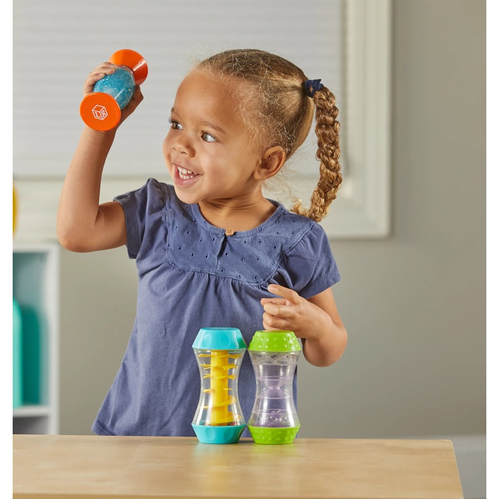 Třeste, chrastí a kutálejte se s trio senzorických fidget trubiček a rozvíjejte při hraní různé senzorické dovednosti malých dětí. Poslouchejte padající korálky, sledujte vířící třpytky a smajlíky a vnímejte tíhu padajícího písku. Každá lahvička je 13 cm vysoká a pro malé ručičky se snadno uchopí a drží. Lahve jsou bezpečně uzavřené a vyrobené z odolných materiálů, které vydrží dlouhé používání a po hraní se také snadno otírají. Díky těmto vlastnostem jsou ideální pro senzorické hry ve třídě, doma nebo na cestách.