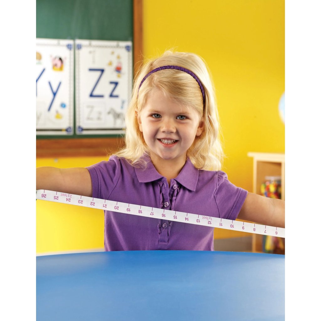 Pomáhá dětem pochopit reálné měření tím, že jim umožňuje porovnávat výšky a měřit objekty až do délky 1,2 metru. Jedna strana zobrazuje palce a stopy, zatímco rubová strana zobrazuje centimetry a metry, a to jak v metrických, tak i v standardních jednotkách. Ideální pro rozvoj raných měřicích dovedností.